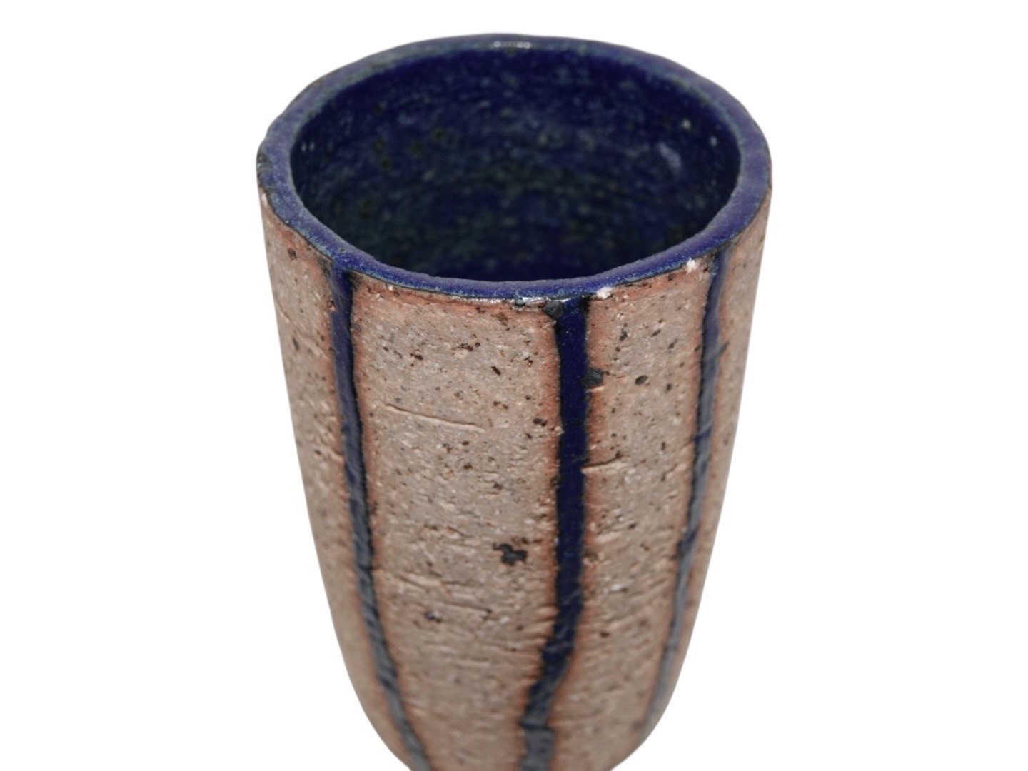 Beskrivelse: Christian Poulsen keramik tidlig vase med lodrette striber.