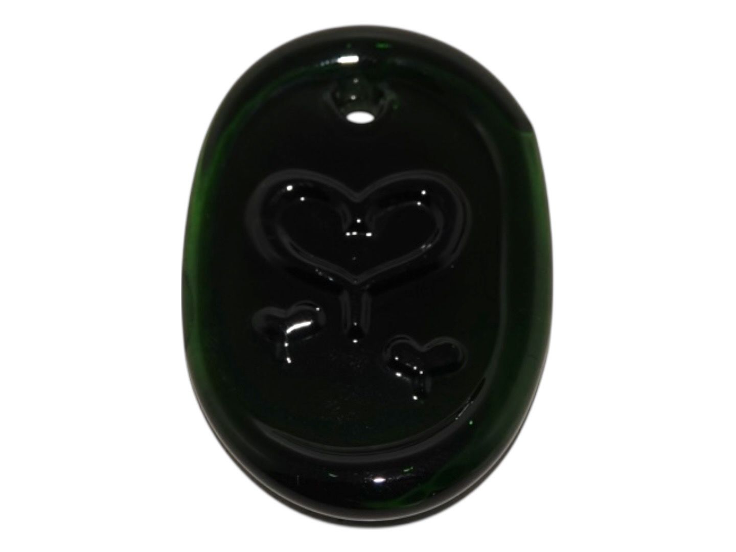 Beskrivelse: Holmegaard, lille møkregrøn solfanger med hjerte fra 1970'erne.