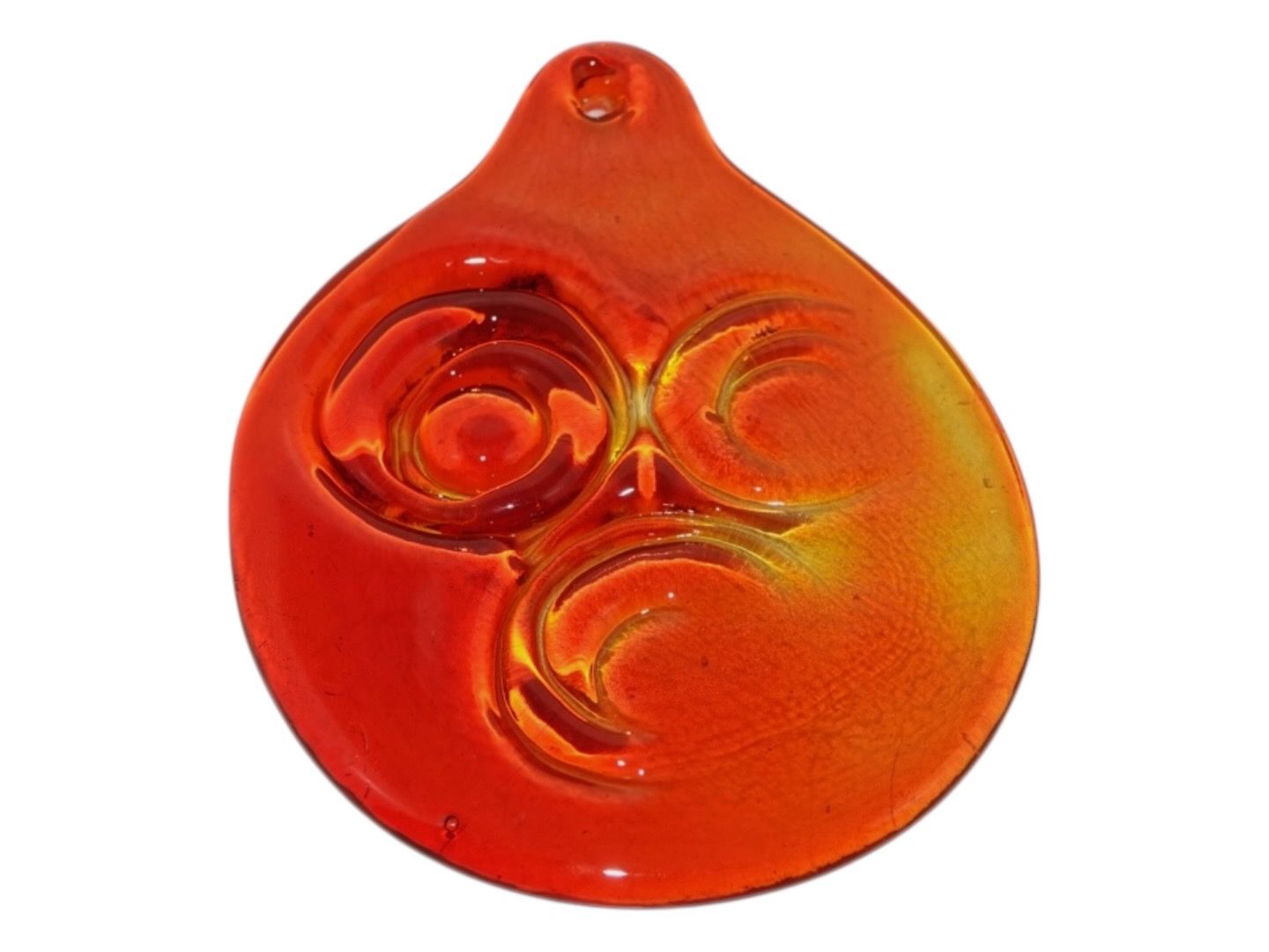 Beskrivelse: Holmegaard, orangerød dråbeformet solfanger fra 1970'erne.