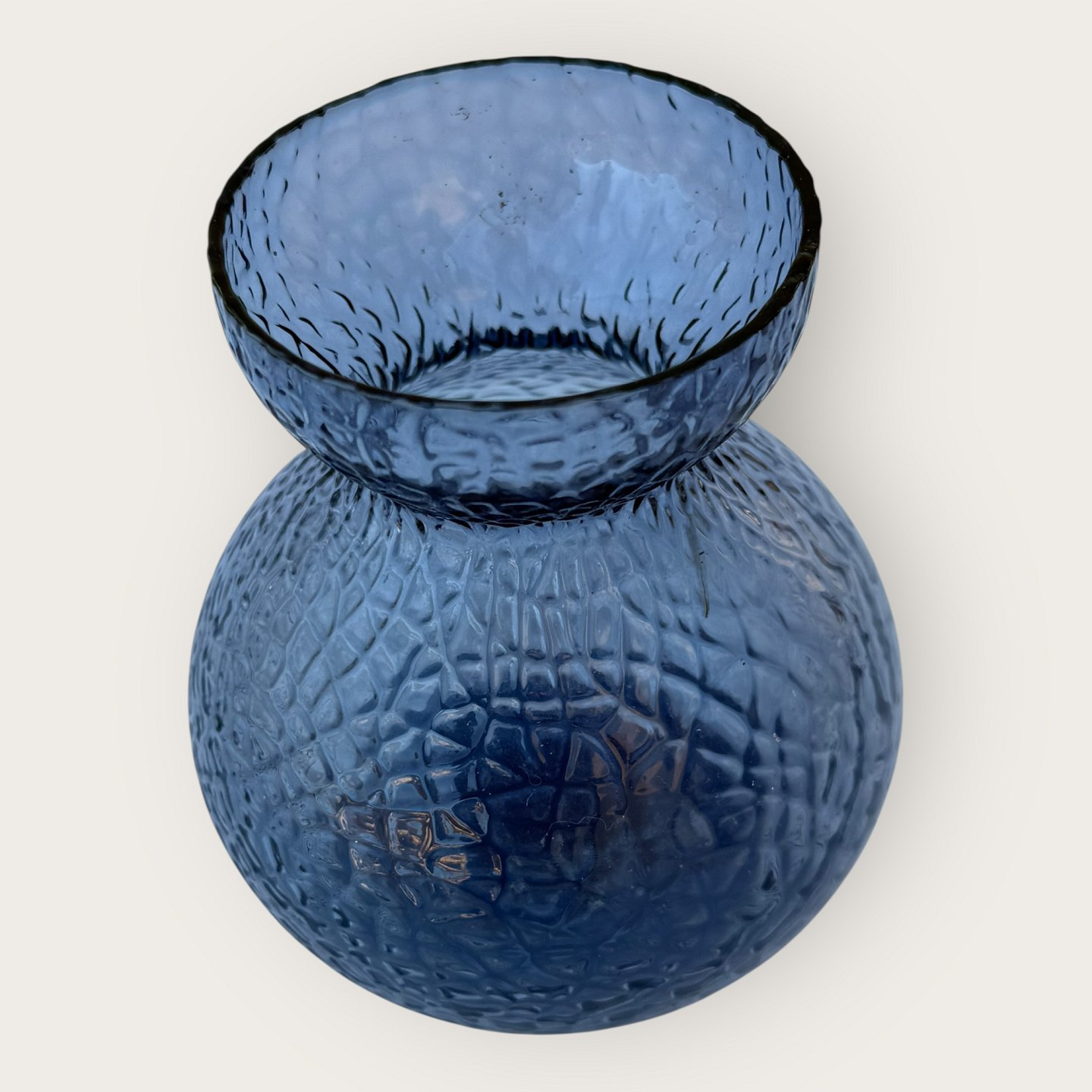 Beskrivelse: Hyacintglas, Fyens glasværk, Lavendelblå, Med ru overflade, 10cm i diameter, 11cm høj *Pæn stand*