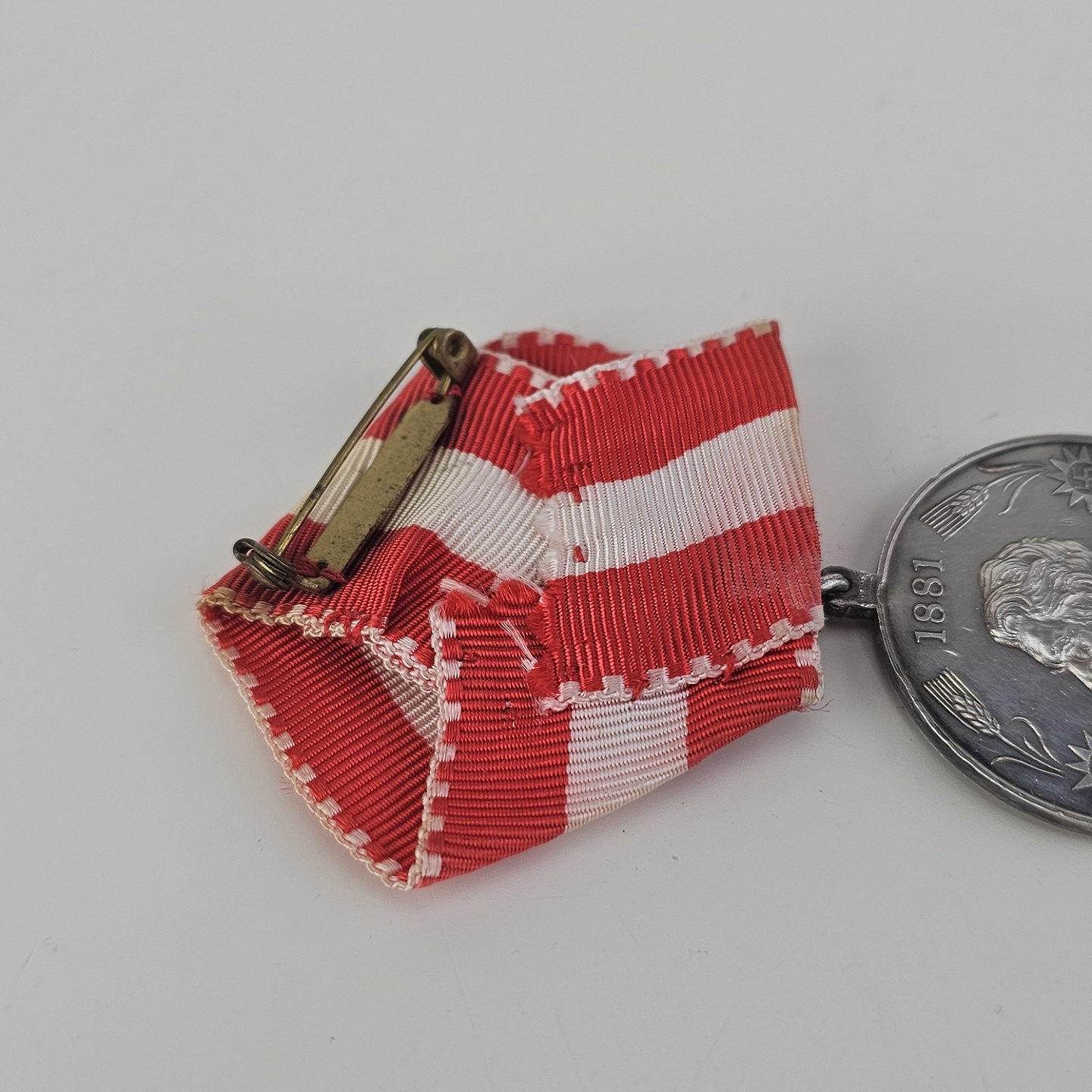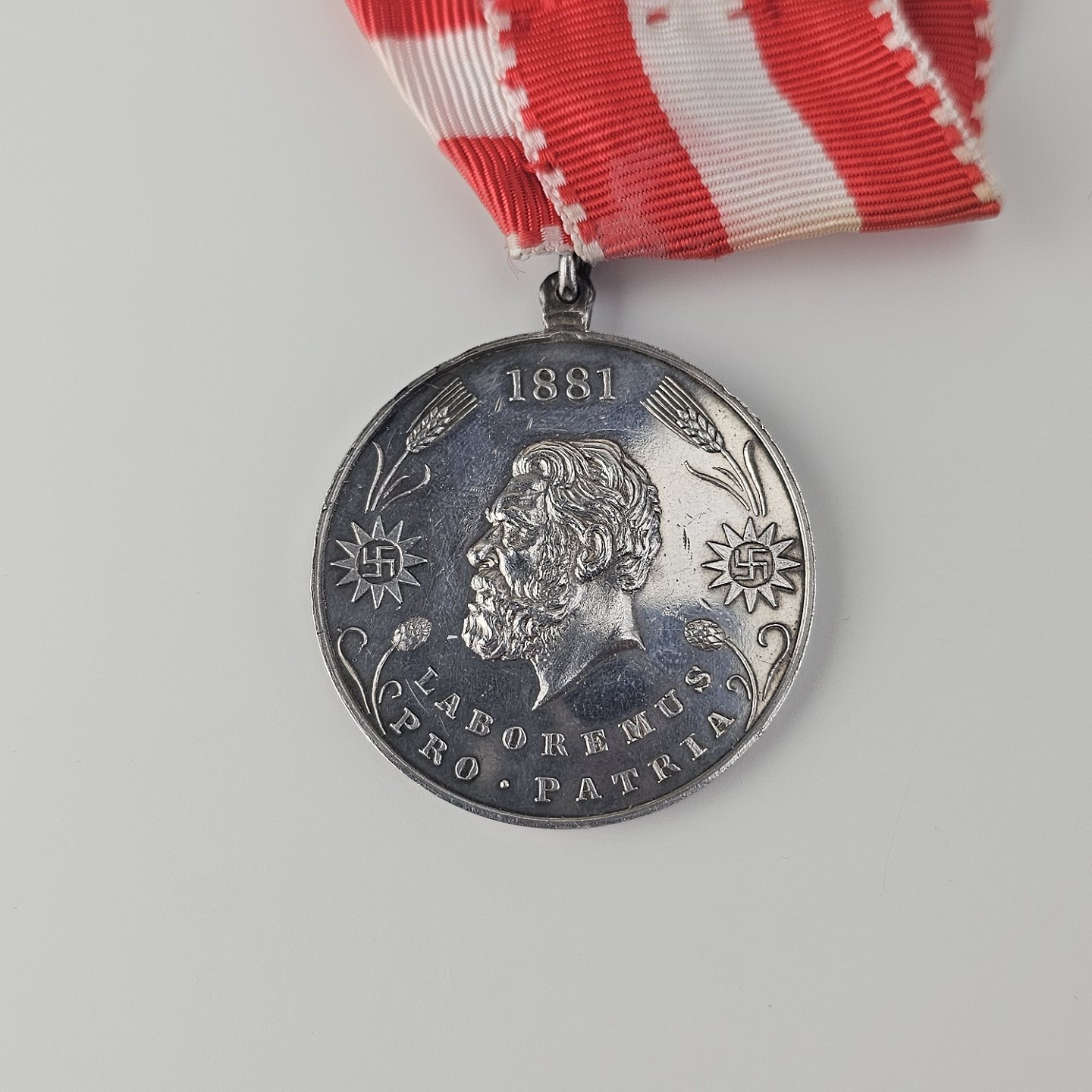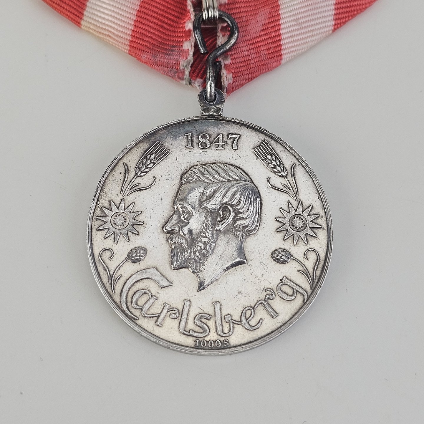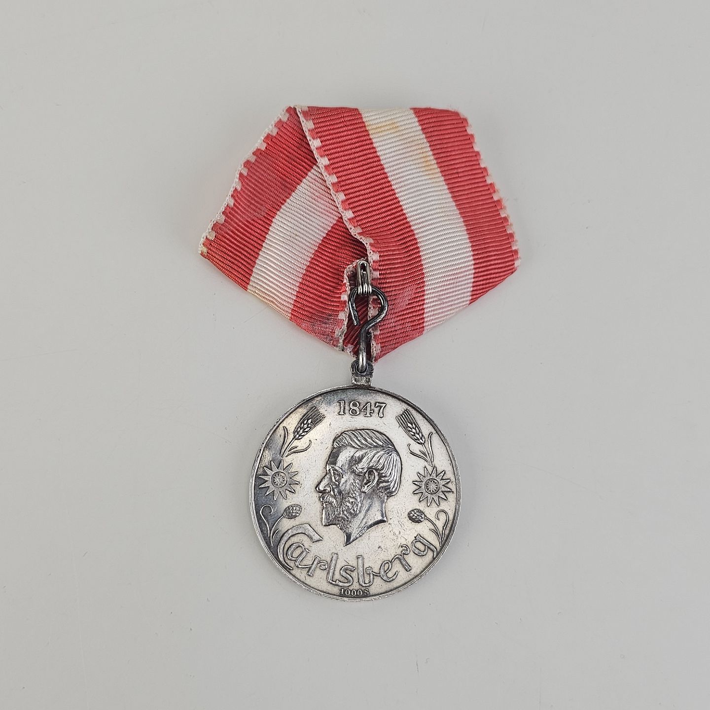 Beskrivelse: Carlsberg jubilæumsmedalje i sølv med Carlsberg 1847 graveret på den ene side og "Laboremus pro patina" 1881 på den anden