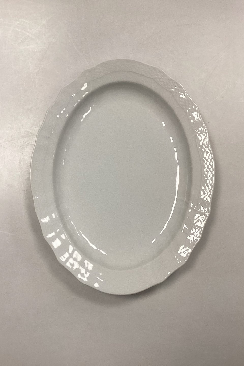 Beskrivelse: Royal Copenhagen Hvid Josephine Ovalt Fad No. 375