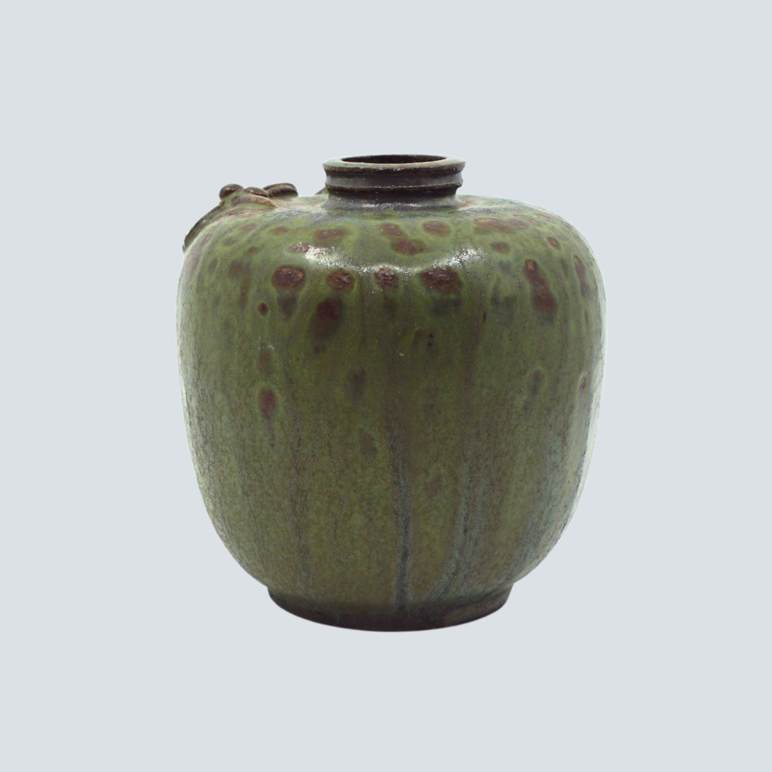 Arne Bang; Lille vase af stentøj med grøn og brun glasur