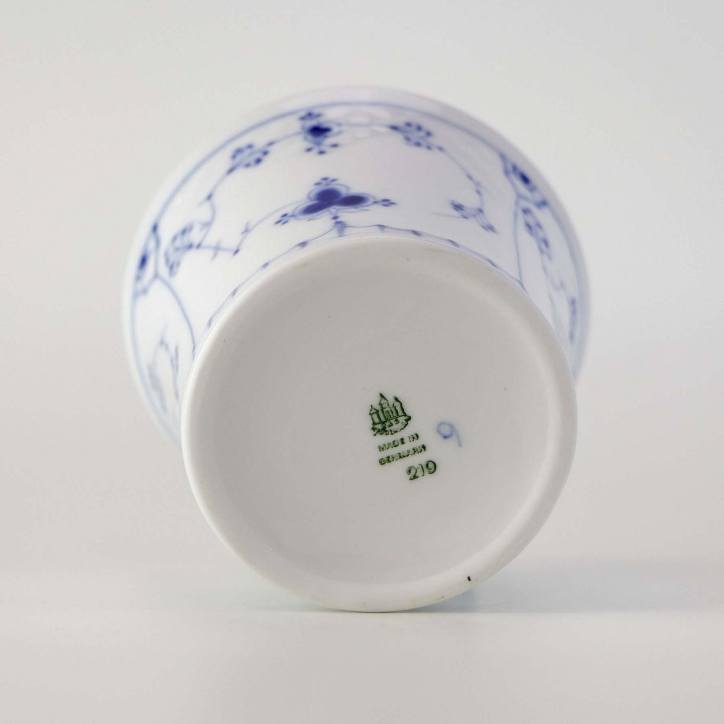 Beskrivelse: Lille vase i porcelæn fra stellet Blåmalet. Nr. 210