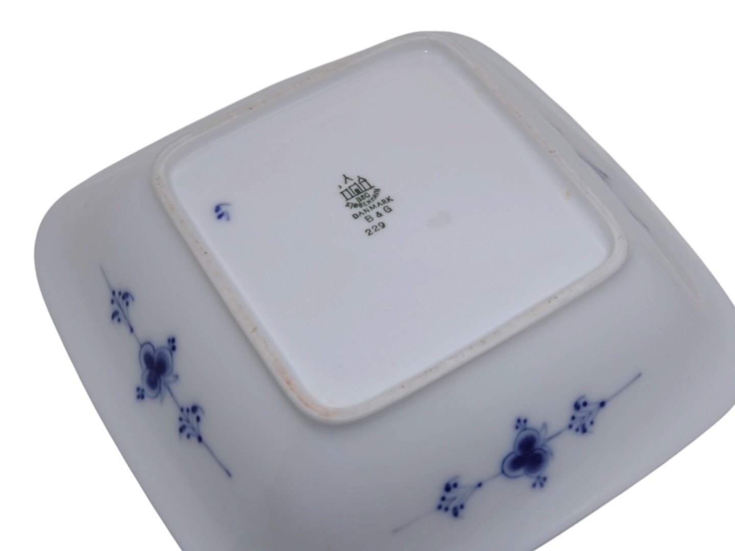 Beskrivelse: Bing & Grøndahl Blåmalet / Musselmalet, lille firkantet skål.