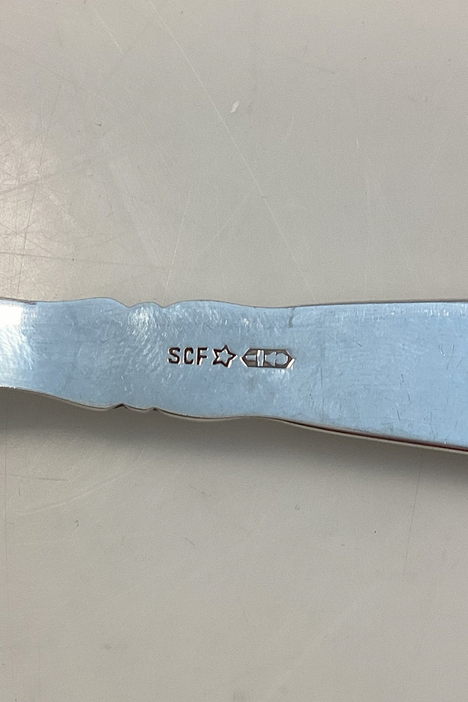 Beskrivelse: Major Sølvplet Kartoffelske af Christian Fogh. Mærket SCF - NS.
