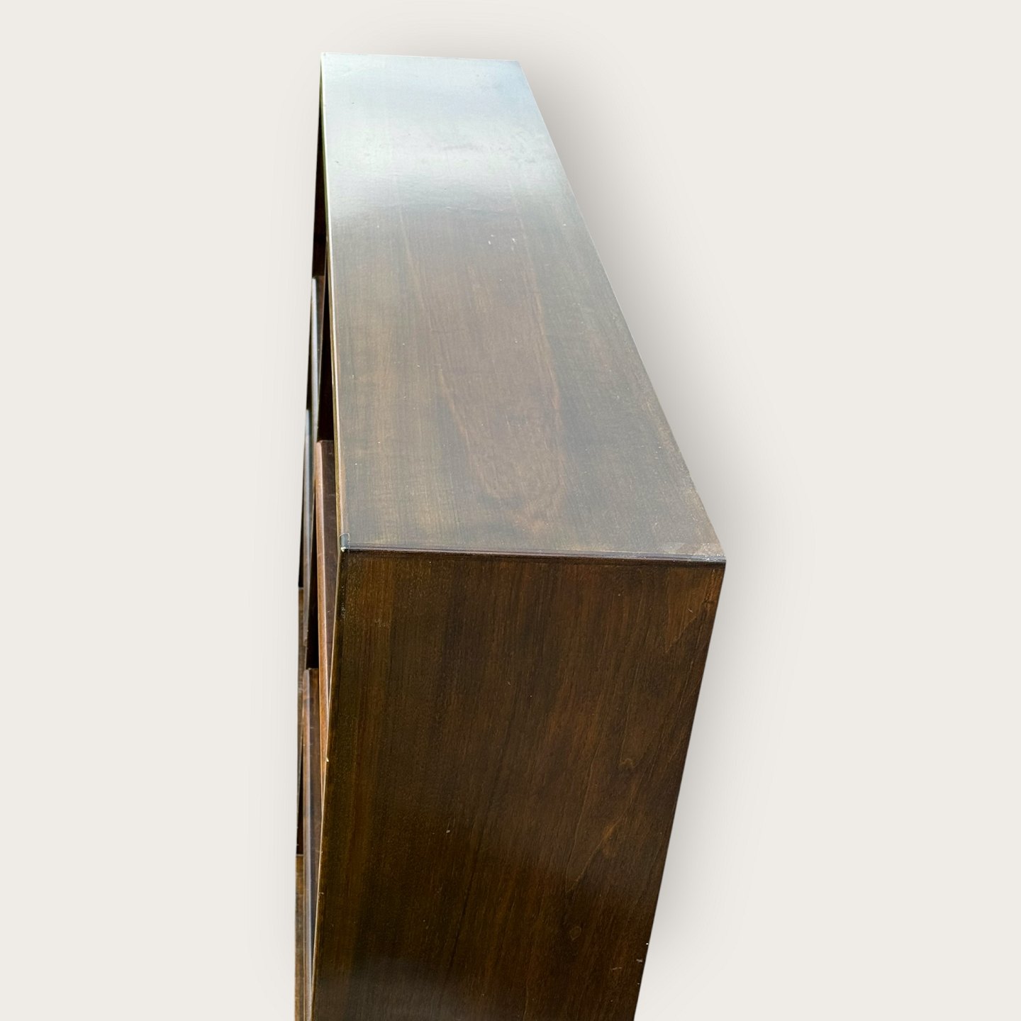 : Reol i lakkeret nøddetræsfiner, Mål HxBxD 116x129x28cm *pæn brugt stand*