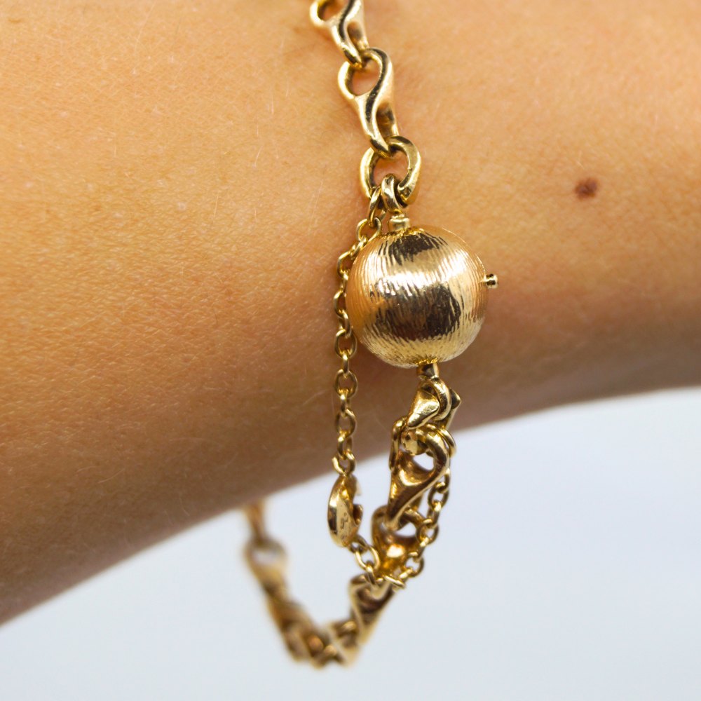 Ole Lynggaard; Lille Otte-tals armbånd i 14 kt. guld med kuglelås