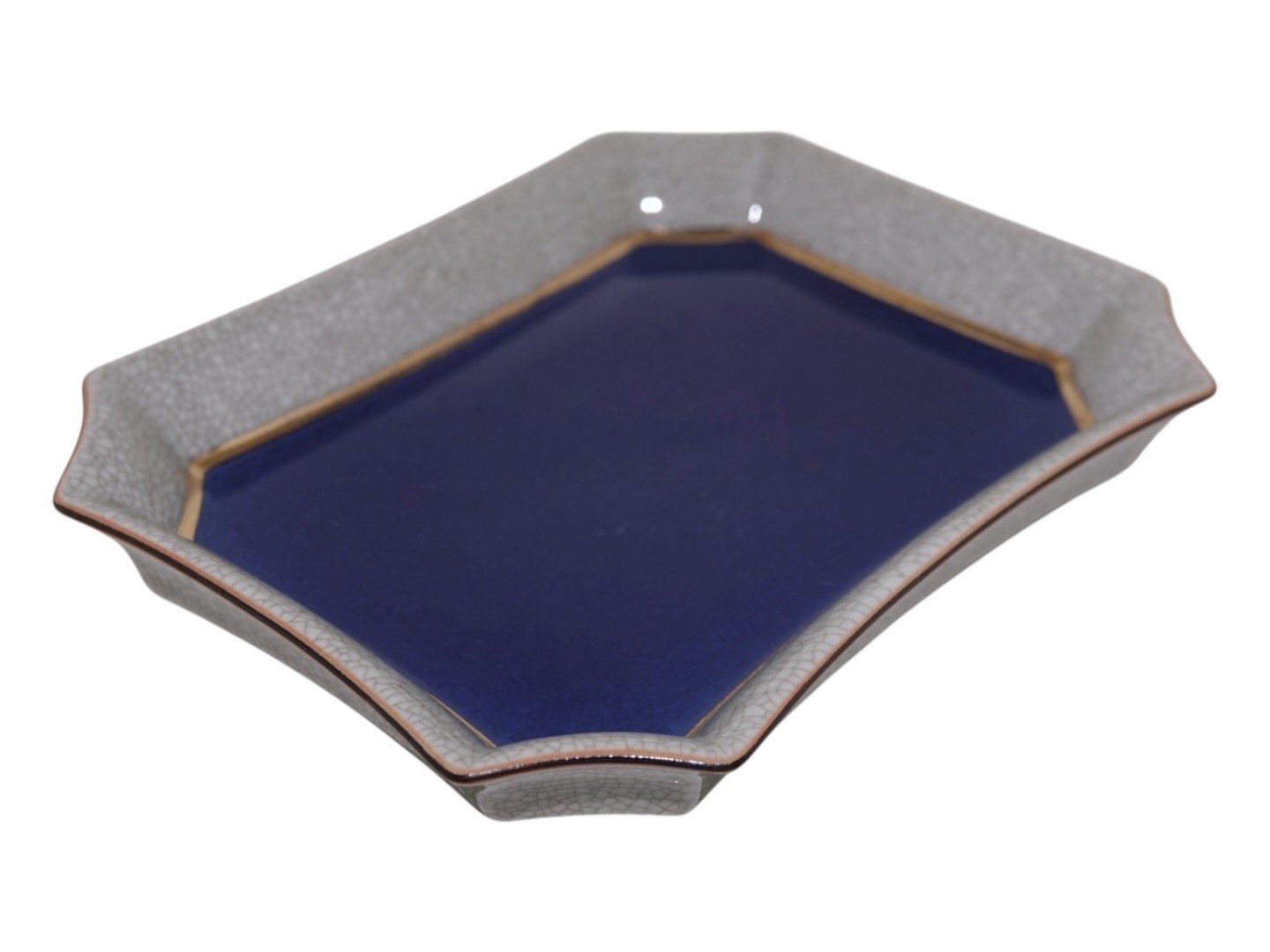 Beskrivelse: Royal Copenhagen Craquele (Krakele), lille mørkeblå bakke.