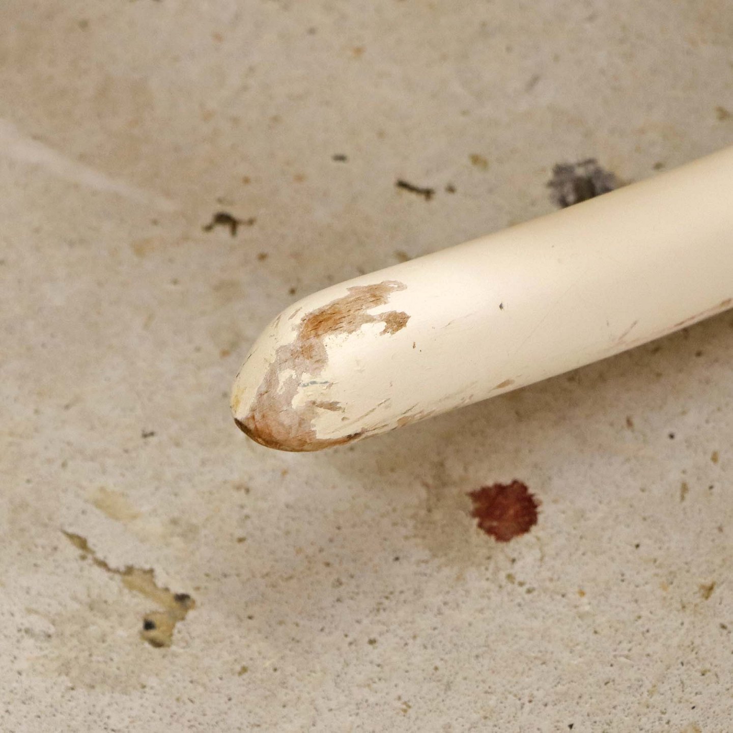 Beskrivelse: Tremme gyngestol formgivet år 1958 i hvidlakeret træ. Model IW3